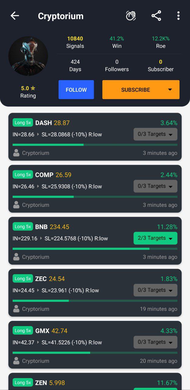 * Winrate, RoE, jumlah signal, jumlah follower, jumlah subscriber